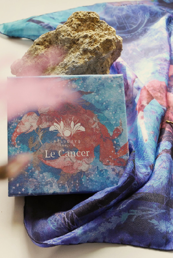 Le motif “Cancer” explore la sensibilité profonde, la protection bienveillante et la force intérieure silencieuse propres à ce signe d’eau.