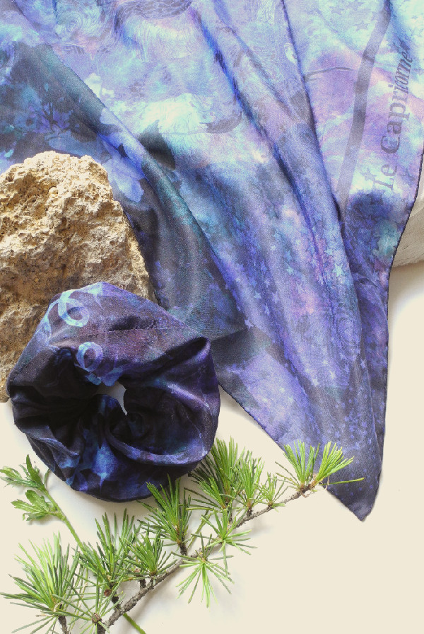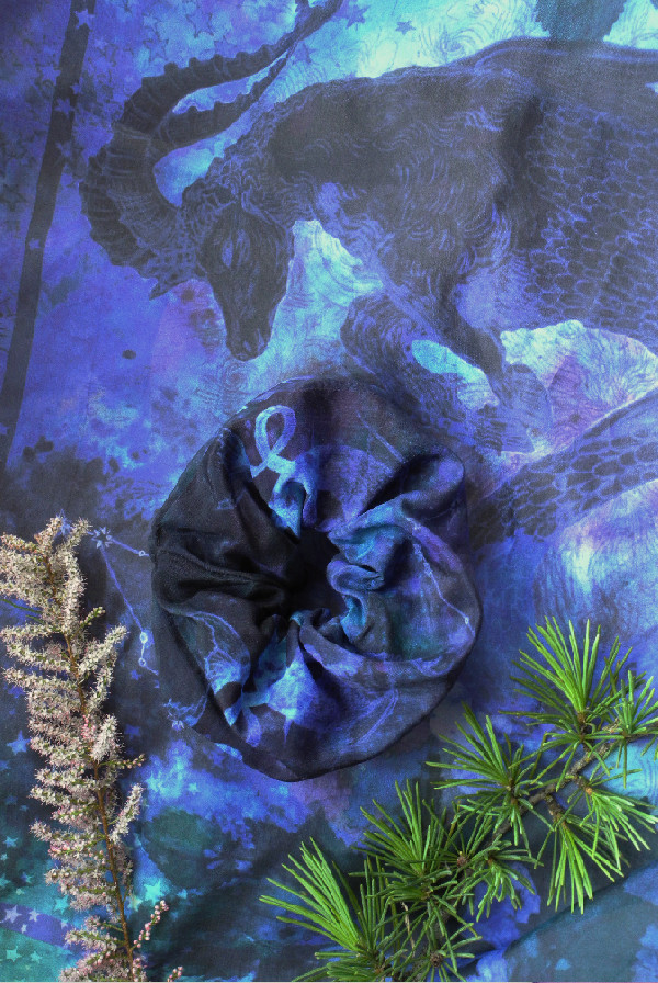 Chouchou en coton et soie – collection « Belle étoile » motif exclusif – le Capricorne